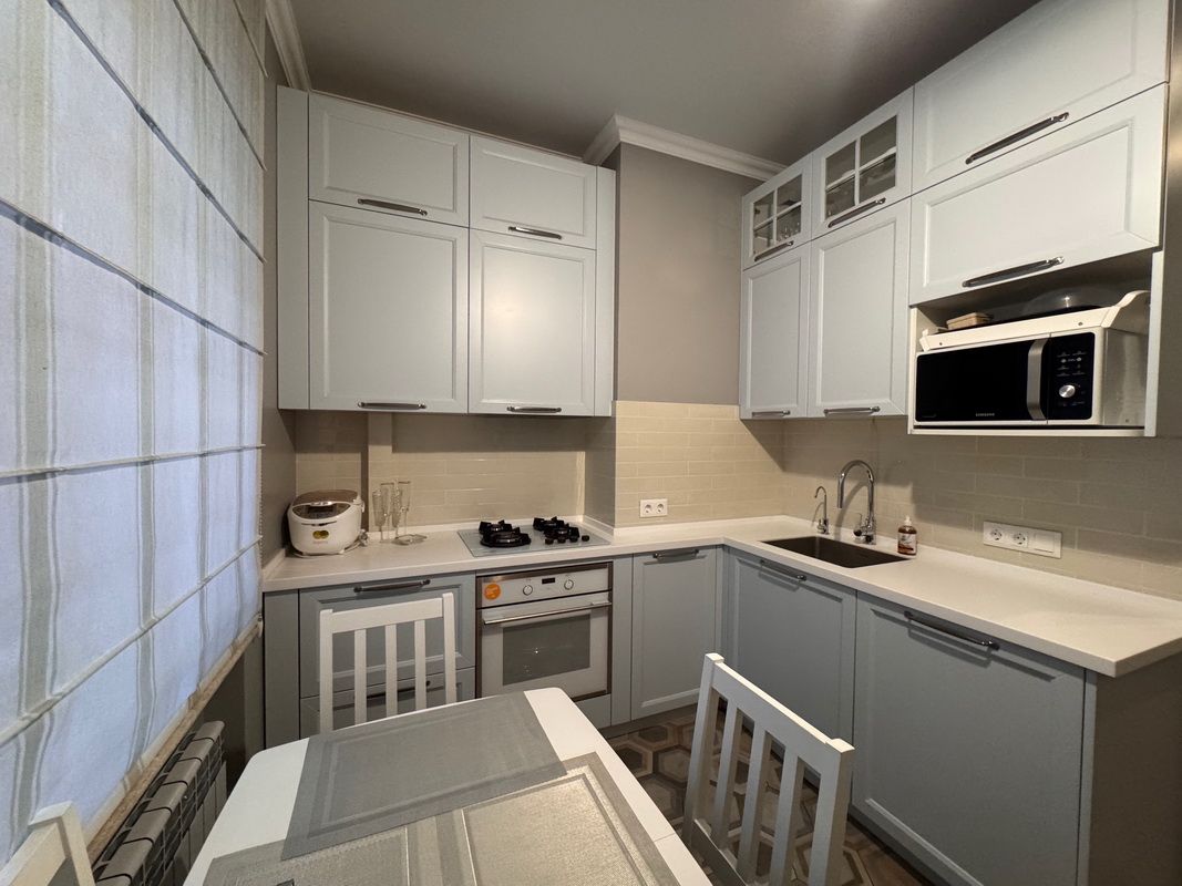В продаже уютная квартира классической планировки в крепком сталинском доме, расположенном в одном из лучших районов города — 5-я станция Большого Фонтана. Отличная локация: рядом море, парк, школы, магазины и удобная транспортная развязка. Квартира расположена на 3 этаже 4-этажного дома. Общая площадь — 52 м². Планировка включает просторную гостиную, уютную спальню со встроенными зеркальными шкафами и функциональную кухню, оборудованную индивидуально спроектированной мебелью и техникой Siemens. Выполнен современный ремонт в светлых пастельных тонах, квартира полностью укомплектована мебелью и техникой. Установлен источник бесперебойного питания — комфорт и стабильность в любое время. Идеальный вариант для молодой семьи или для тех, кто ценит атмосферу комфорта и жизни в тихом районе у моря.